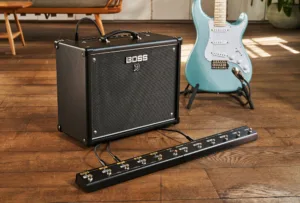 Ο combo ενισχυτής BOSS Katana-100 προσφέρει ένα βήμα παραπάνω σε ισχύ και ευελιξία σε σχέση με το Katana-50, καθιστώντας τον εξαιρετική επιλογή για μουσικούς που χρειάζονται μεγαλύτερο headroom και ισχυρότερη σκηνική παρουσία. Με ισχύ 100 watt και ηχείο 12′ ιντσών, ο Katana-100 προσφέρει άφθονο όγκο και καθαρότητα, διασφαλίζοντας ότι η κιθάρα “ακούγεται” ακόμα και μέσα στα πιο δυνατά συγκροτήματα.
