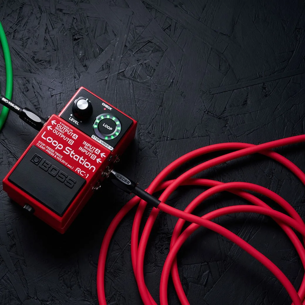 Brighten up your performance stage or practice space with orange, yellow, green, red, and blue options. Or go with the black model for a traditional look. Each cable comes with fun packaging that has a large graphic representation of a BOSS pedal in a matching color. BOSS BIC cables feature studio-grade, oxygen-free copper core wire that transfers every tonal detail, while custom-designed connectors ensure precise sound reproduction. The heavy-duty braided shield provides both ultra-quiet operation and lasting durability you can count on.
