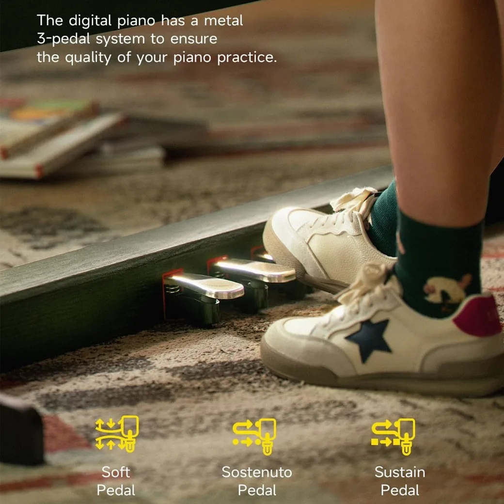 Practical as well as inspiring, the DDP-95 includes built-in learning modes to guide beginners step by step. Its USB connectivity makes it easy to integrate with learning apps and recording software, while the elegant wooden stand with three piano pedals enhances both functionality and appearance. With its sleek, modern design, the DDP-95 looks great in living rooms, teaching studios, or classrooms. Offering quality, versatility, and value, it’s the perfect piano to start your musical journey or take your skills to the next level.