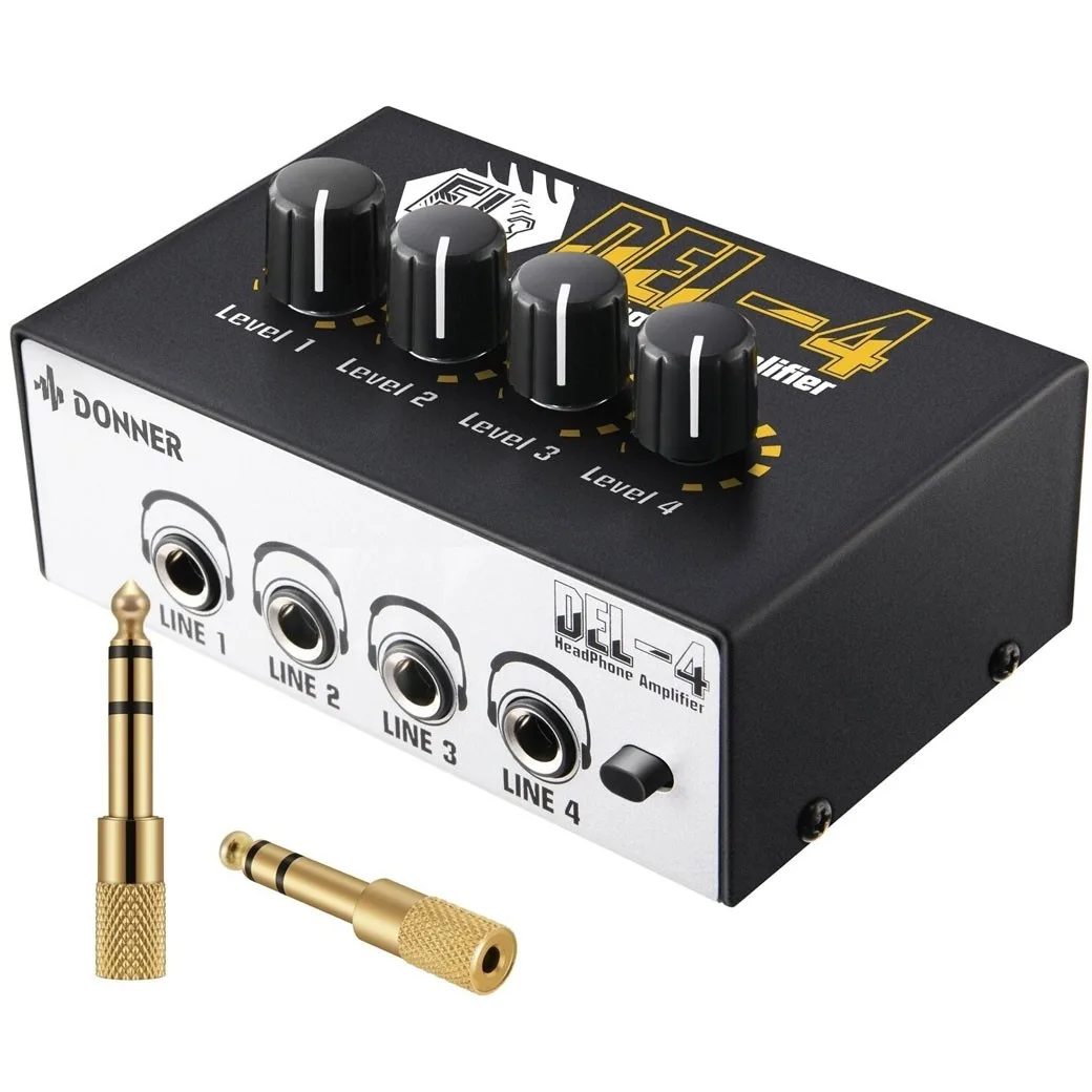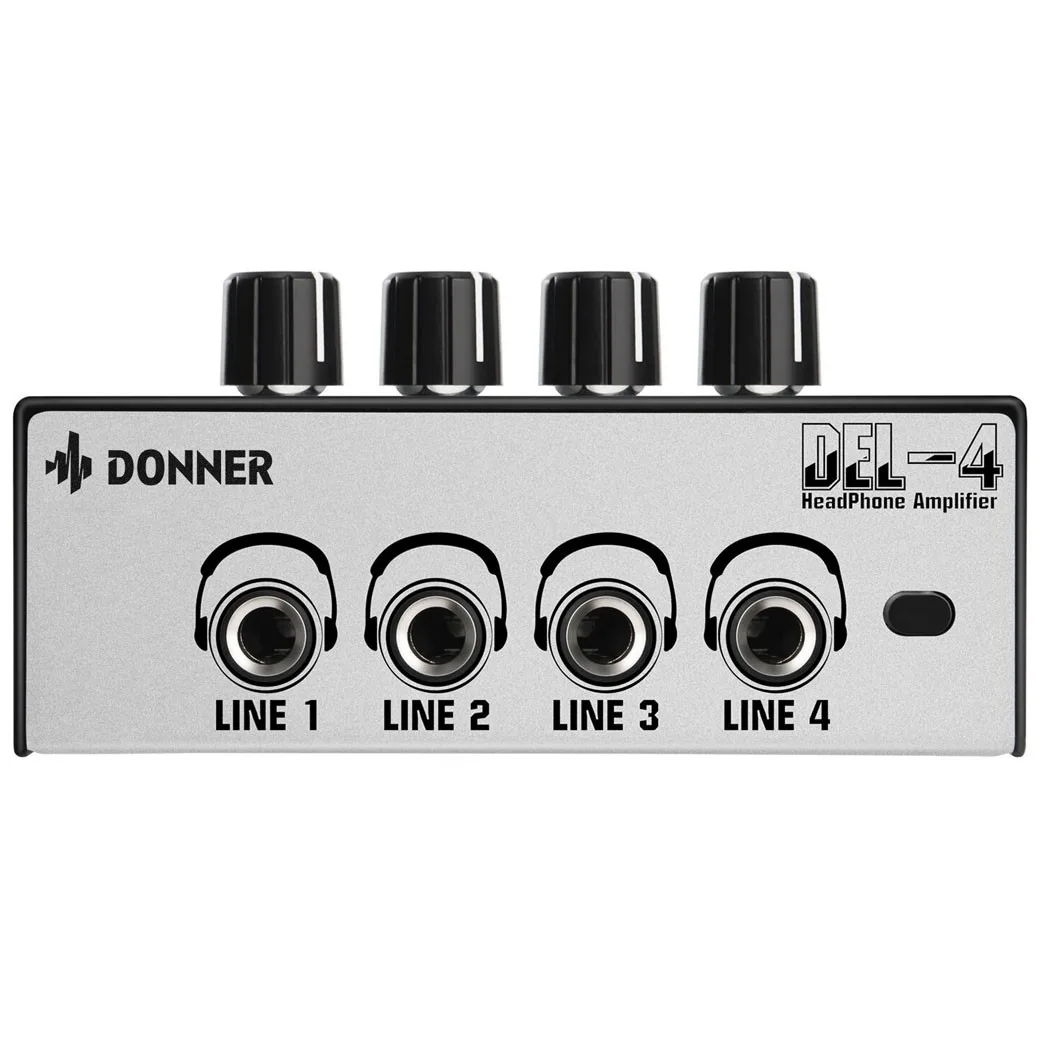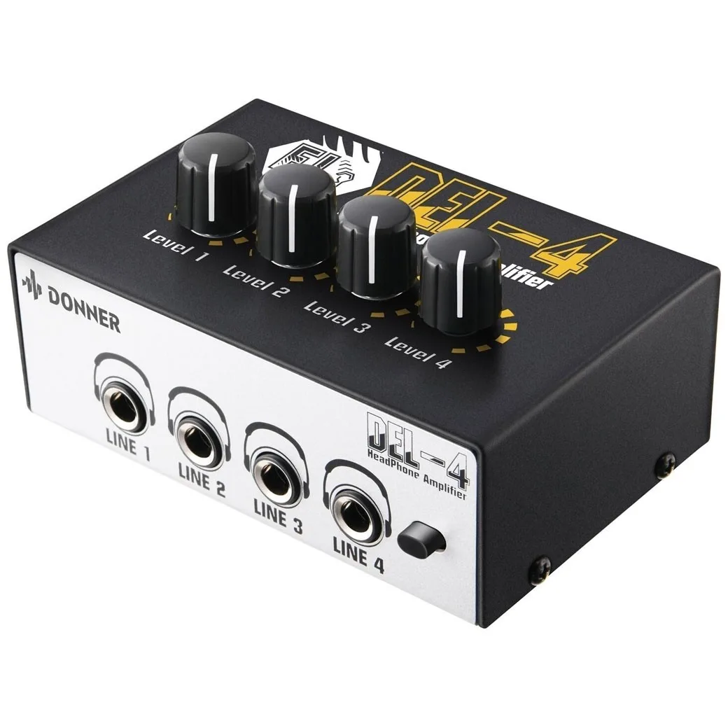 The Donner EC1239 DEL-4 is a professional-grade headphone amplifier designed to deliver clean, dynamic, and well-balanced sound. Perfect for recording studios, rehearsals, and live performances, it ensures multiple users can monitor audio simultaneously without any loss in quality. With its rugged, portable design and low-noise performance, the DEL-4 is an excellent choice for musicians, producers, podcasters, and audio engineers who demand reliable monitoring. Each of the four headphone outputs comes with independent volume control, giving every listener a customized monitoring experience. Compact yet powerful, the DEL-4 offers high-quality amplification and ergonomic operation, making it a versatile tool for both professional and home studio setups.