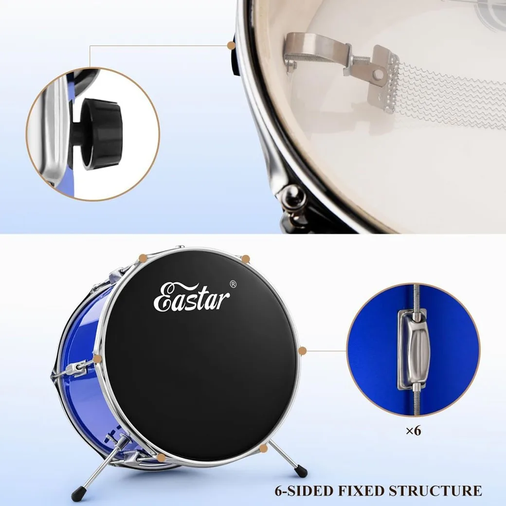 Unleash the rhythm within your child with the Eastar Kids Drum Set EDS-180SB. This meticulously crafted 3-piece drum set provides an engaging introduction to the world of music, designed specifically for budding drummers aged approximately 3 to 10. This complete package delivers everything a young musician needs to begin their rhythmic exploration, offering impressive sound, durable construction, and exceptional value. Perfect First Drum Set: Ideal for children aged 3-10 (approx.) who are just starting their musical journey. Provides a complete drumming experience with everything needed to begin playing. Durable poplar wood shells and quality drumheads offer a surprisingly rich and resonant sound. Sturdy hardware ensures stability and longevity. Complete Package: Includes all essential accessories: adjustable throne, kid-sized and adult-sized drumsticks, bass drum pedal, and cymbal. Ready to play right out of the box (some assembly required).