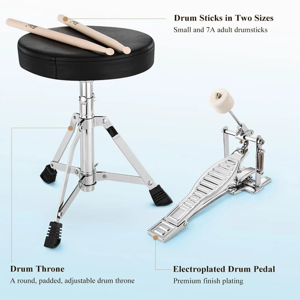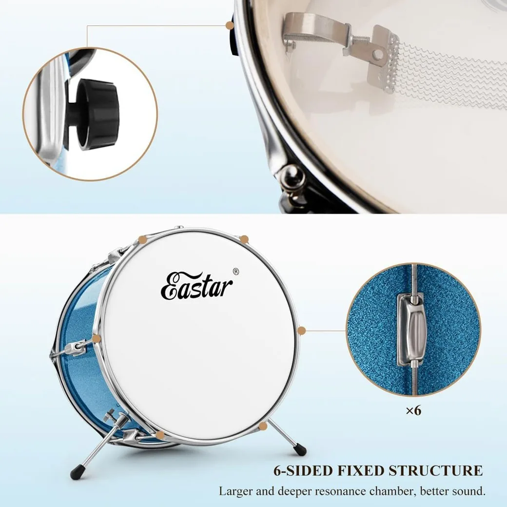Unleash the rhythm within your child with the Eastar Kids Drum Set EDS-180SB. This meticulously crafted 3-piece drum set provides an engaging introduction to the world of music, designed specifically for budding drummers aged approximately 3 to 10. This complete package delivers everything a young musician needs to begin their rhythmic exploration, offering impressive sound, durable construction, and exceptional value. Perfect First Drum Set: Ideal for children aged 3-10 (approx.) who are just starting their musical journey. Provides a complete drumming experience with everything needed to begin playing. Durable poplar wood shells and quality drumheads offer a surprisingly rich and resonant sound. Sturdy hardware ensures stability and longevity. Complete Package: Includes all essential accessories: adjustable throne, kid-sized and adult-sized drumsticks, bass drum pedal, and cymbal. Ready to play right out of the box (some assembly required).